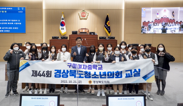 경상북도의회(의장 배한철)의 “2022년 경상북도청소년의회 교실”이 구미여자중학교 학생들을 대상으로 10월 21일 경상북도의회 본회의장에서 개최됐다.