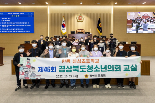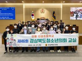 [화보] 경상북도의회는 2022.10.27.() 14:00 도의회 본회의장에서 안동 신성초등학교 5,6학년 20여명이 참여한 46회 경상북도청소년의회 교실을 개최했다.