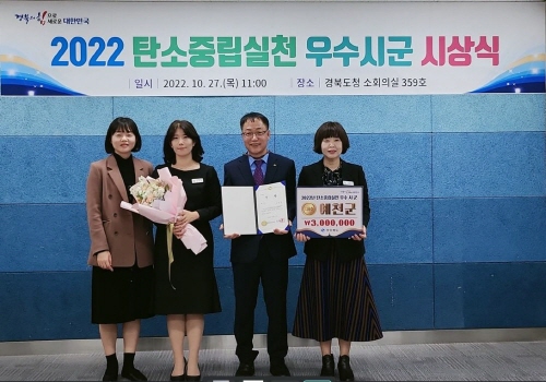 경상북도가 주관한 ‘2022년 탄소중립 실천’ 우수시군 평가에서 예천군(군수 김학동)이 최우수상을 수상했다.