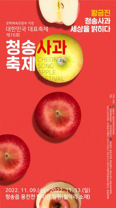 한편 청송군은 제16회 청송사과축제행사를 당초 11월 2일부터 11월 6일까지 개최할 예정이었으나, 최근 발생한 이태원 사고로 인해 국가애도기간이 지정됨에 따라 이에 동참하고 희생자들을 추모하는 마음에 11월 9일부터 11월 13일까지 1주일간 연기하여 축제를 개최하기로 했다.