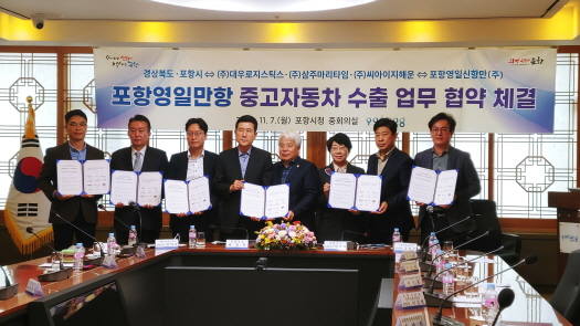 경상북도는 7일 포항시청 9층 회의실에서 포항영일만항 중고자동차 수출 업무협약을 체결했다.