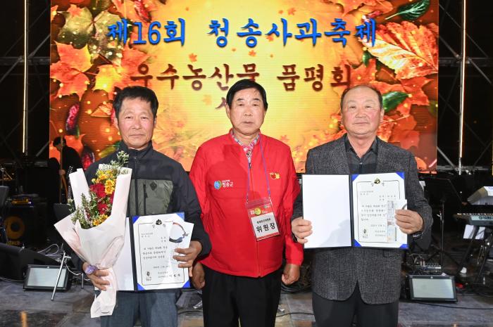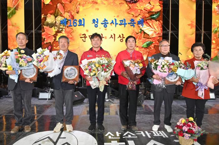 청송군은 ‘제16회 청송사과축제’ 둘째 날인 지난 10일 축제장 주무대에서 올해 사과왕·군민상 시상식을 가졌다.
