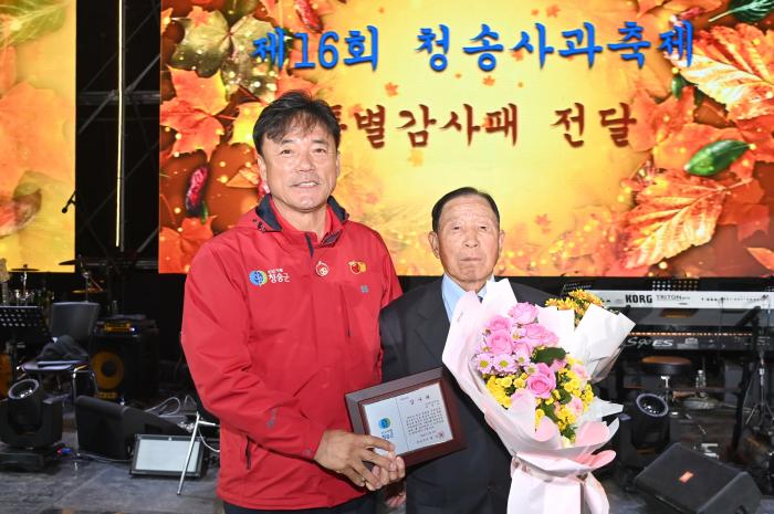 특별히 이번 사과축제에서는 항상 청송군 이웃돕기에 앞장서 주시는 부남면 박명수 씨가 감사패를 받기도 했다.