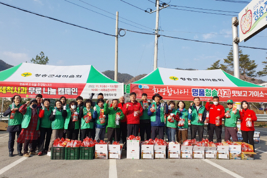 청송군새마을회는 청송사과축제 기간(11. 9. ~ 11. 13.) 동안 한국도로공사 청송지사 앞에서 지역주민들과 관광객들을 대상으로 '청송사과 무료 나눔 행사'를 가졌다.
