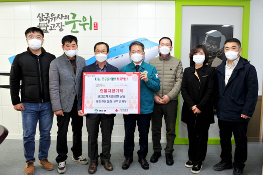 대한한돈협회 군위군지부는 15일 관내 저소득가정과 취약계층에 450만 원 상당의 돼지고기를 군위군에 기부했다.
