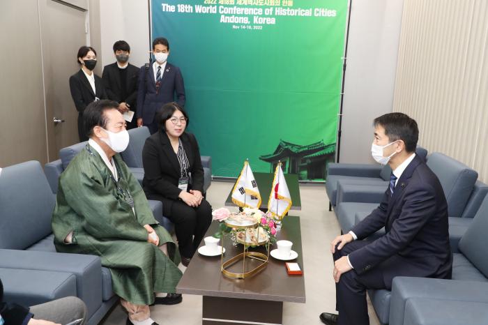 안동시는 11월 16일『제18회 세계역사도시회의』에 참가하기 위해 안동시를 방문한 파트너시티인 가마쿠라시(鎌倉市)마츠오 다카시(松尾崇)시장과 안동국제컨벤션센터에서 간담회를 가졌다.