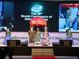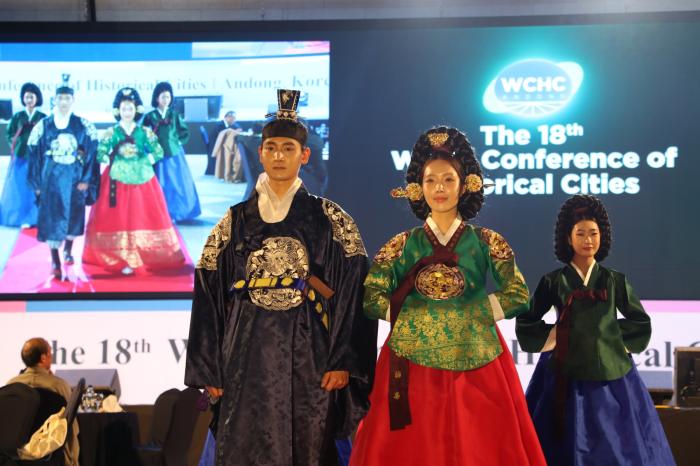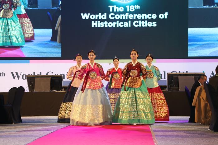 [화보] 제18회 세계역사도시회의에서 한복패션쇼가 열리며 외국인 참가자들을 매료시켰다. 궁중한복 등 한국 전통 복식의 고귀한 아름다움을 여실히 전달하며 한국 고유의 문화를 알렸다.