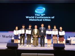 청소년들의 발표가 끝난 후 세계역사도시연맹 회장인 교토시장과 안동시장은 참가한 학생들에게 참가증서를 전달하며 감사를 표했다.