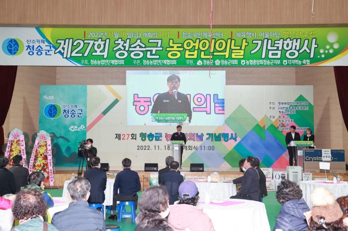 농업인의 날 기념행사는 농업인의 날을 맞아 농업인들의 노고를 격려하고 농업인 단체의 화합과 단결을 도모하고자 청송군농업인단체협의회의 주최·주관으로 매년 11월에 개최되고 있으며, 이날 행사에는 윤경희 청송군수를 비롯해 권태준 청송군의회 의장 및 군의원, 각급 기관 단체장 및 농업인 등 1,000여명이 참석해 성황을 이뤘다.