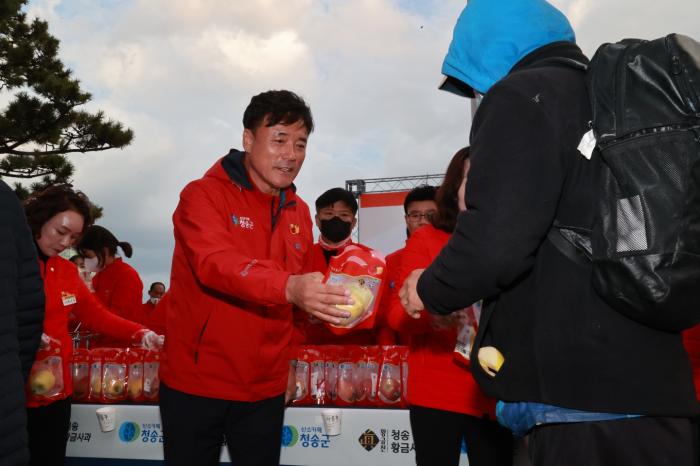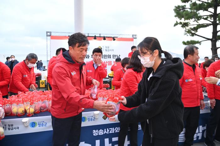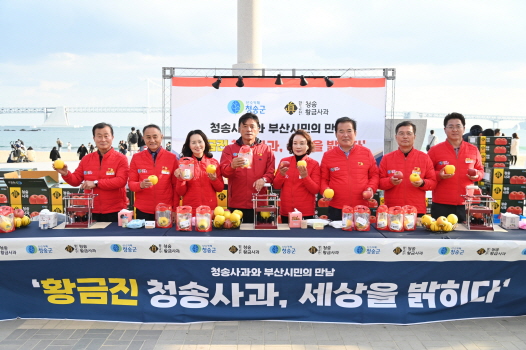 이날 행사는 “황금진 청송사과, 세상을 밝히다.”라는 주제를 내걸고, 부산을 찾는 관광객과 MZ세대들의 핫플레이스(Hot Place)인 광안리해수욕장 카페거리 만남의 광장에서 청송사과의 우수성을 널리 홍보하고 판로확대를 통한 지역 농가의 실질적인 소득을 높이기 위해 마련되었으며,