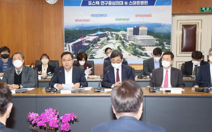 경상북도는 21일 포스텍 본관 대회의실에서 포항시·포스텍과 함께「의사과학자 양성 보건복지부 장관 간담회」를 통해 포스텍 연구중심 의대 설립을 향한 대정부 공감대 형성의 장을 마련했다.