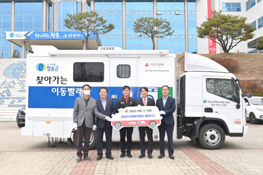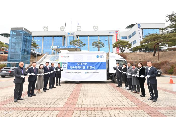 청송군은 11월 22일 군청 주차장에서 '이동세탁차량 전달식'을 가졌다.