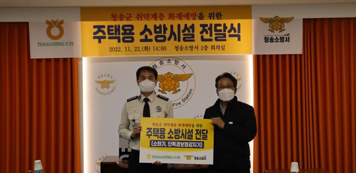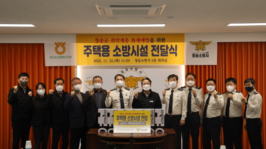 청송소방서(서장 윤태승)는 22일 청송농협과 함께 주택용 소방시설(소화기, 단독경보형 감지기) 전달식을 가졌다.