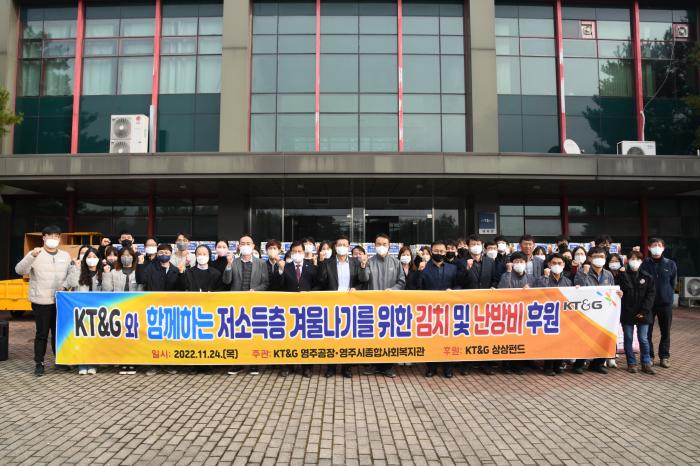 KT&G 영주공장(공장장 김정후)은 24일 KT&G 영주공장 체육관에서 2022년 ‘사랑의 김장김치 및 난방비 지원 전달 행사’를 가졌다.