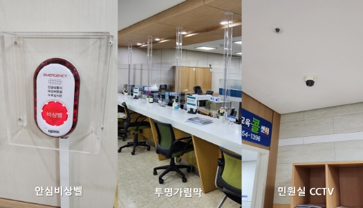 고정형 투명가림막은 특이민원인의 폭력에 대비해 외부 충격에 강한 재질로 제작했으며, 안심 비상벨은 112 상황실과 직접 연결해 즉시 출동이 가능하도록 했다. 아울러 CCTV는 교육청 종합방재센터 서버와 연결해 민원창구를 상시 모니터링할 예정이다.