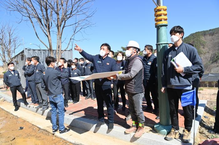 5일 아침 윤 군수는 간부공무원들과 함께 확대 간부회의를 마치고 청송솔빛정원(주왕산면 하의리), 청송IC 명품숲 조성공사 현장(파천면 관리), 산소카페 청송정원(파천면 신기리), 전선지중화사업 현장(청송버스터미널), 백신예방접종센터 설치현장(청송읍 금곡리) 등 주요 현안사업장을 방문해 사업 추진상황 및 향후계획에 대한 보고를 받고 각종 애로사항과 건의사항 등을 청취했다.