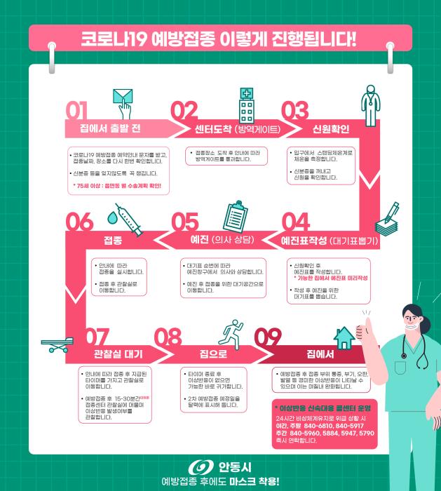권영세 안동시장은 “코로나19 백신접종에 적극적으로 참여해 소중한 일상을 회복하는 출발점이 되길 바란다.”라며 “안전하고 차질 없는 예방접종을 위해 빈틈없는 준비에 최선을 다하겠다.”라고 말했다.