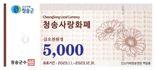 청송군은 지역의 경제 활성화를 이끌고 있는 ‘청송사랑화폐’를 1월 4일부터 시중에 유통·판매한다.