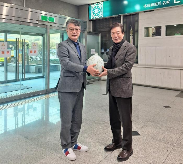 19일 탤런트 이정길씨에 도예명장 이학천씨의 문경도자기 전달