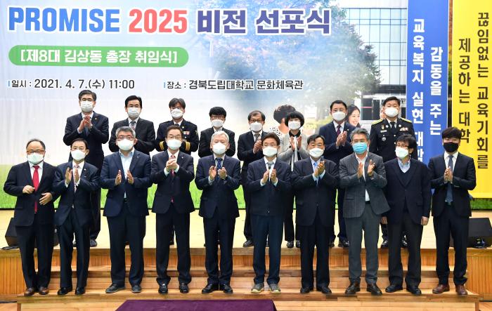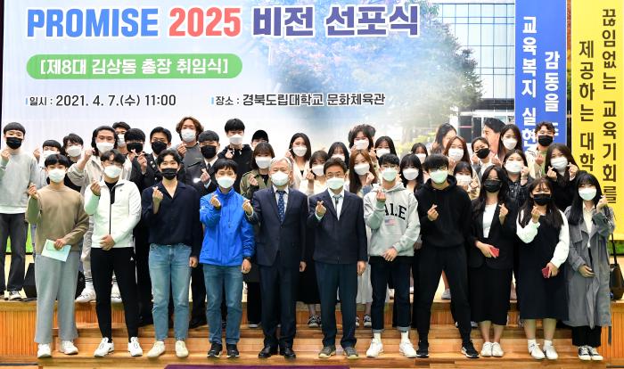 이번 비전 선포식은 지난 3월 취임한 김상동 총장의 취임식을 겸해 진행되었으며 김상동 총장의 취임사와 PROMISE 2025 비전 선포를 시작으로 지역 명문대로의 발전 방향 및 핵심중점과제를 직접 발표해 눈길을 끌었다.