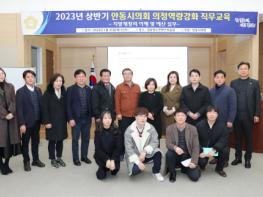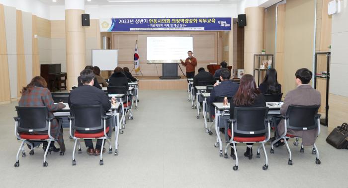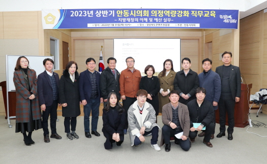 안동시의회(의장 권기익)는 1월 31일 경북콘텐츠진흥원 1층 창조아트홀에서 초선의원 및 의회사무국 직원들을 대상으로 '의정역량 강화 직무교육'을 실시했다.