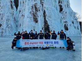 청송소방서는 지난 8일 동절기 내수면 수난사고를 대비하여 청송읍 용전천에서 구조대원 '동계수난사고 대응 특별구조 훈련'을 실시했다.