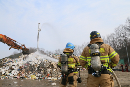 소방훈련에는 소방공무원 및 안동시 관계자 등 약 48명과 소방차량 등 장비 7대가 동원된 가운데 ▲관계자 신고 및 대피와 초기 화재진압훈련 ▲신속 출동을 위한 소방통로 확보훈련 ▲장시간 폐기물 연소를 예상한 소방용수 확보와 화재진압훈련 ▲효율적 화재진압전술 방안모색 등의 내용으로 진행됐다.