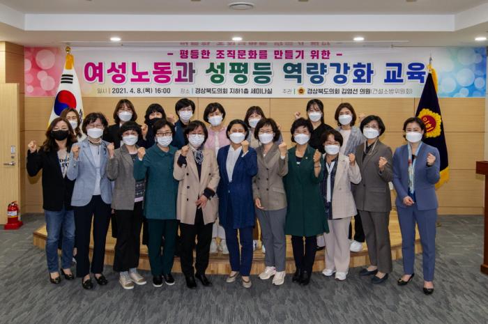 (경북도의회=경북온뉴스) 김승진 기자 = 경상북도의회 건설소방위원회 김영선(비례)의원은 지난 4. 8.(목) 경북도의회 세미나실에서 평등한 조직문화 구현을 위한 ‘여성노동과 성평등 역량 강화 교육’을 실시했다.