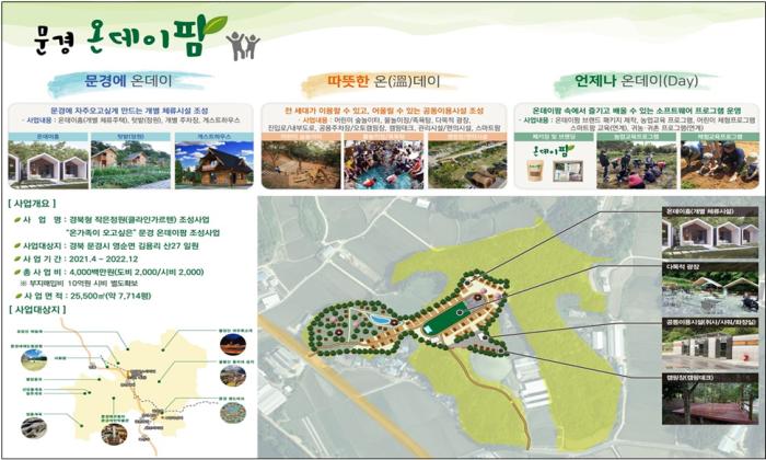 최종 선정된 문경시 ‘온가족이 오고 싶은 문경 온데이팜’은 영순면 김용리 25,500㎡ 부지에 총사업비 40억 원을 투입하여 2022년까지 조성할 계획이다.