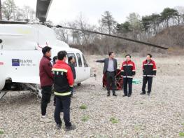 권기창 안동시장은 6일 안동문화관광단지에서 박치선 시의원과 함께 산불 초동진화 최일선에 있는 산불진화 헬기 기장 및 관계자들을 격려하고 안동지역 산불예방 및 초동진화에 최선을 다해줄 것을 당부했다.