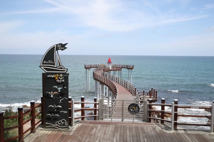 대게로 유명한 영덕군 강구면에 부채모양의 ‘삼사 해상산책로’가 놓여있다. 다른 전망대와 달리 나지막이 형성된 것이 특징이다. 그만큼 바다를 바로 접할 수 있어 산책로를 한 바퀴 돌다보면 바다와 하나 됨을 만끽하게 된다. 그리고 이 곳은 갈매기가 많이 노니는 곳인데 새우깡 한 봉 들고 가는 것을 추천한다.
