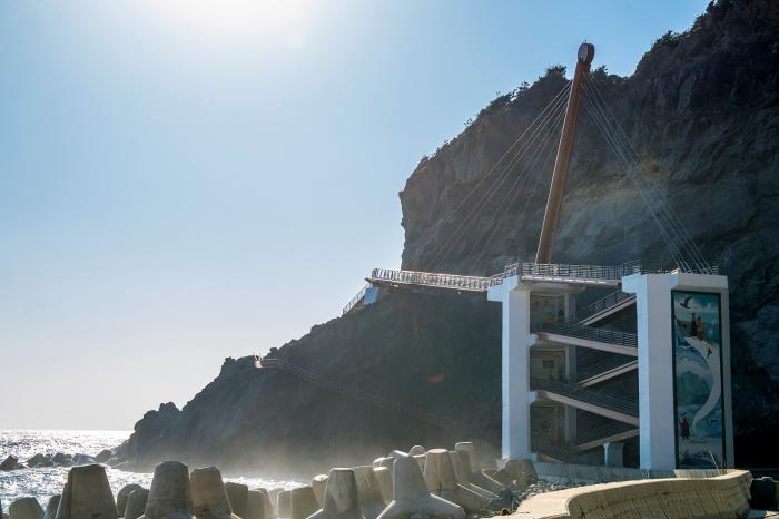 신비의 섬 울릉도에는 소라계단이 있다. 소라계단은 양 벽을 사이에 두고 지그재그로 올라가는 매끄러운 슬로프로 이루어져있다. 즉 실제로는 계단이 아니다. 소라계단의 벽면에는 울릉의 역사를 담은 스토리텔링 벽화가 있어 상층부까지 올라가는 길에 흥미를 돋운다. 상층부는 울릉의 아름다운 해안선과 기암괴석을 감상할 수 있는 경관인도교와 산책로로 이어진다. 울릉도를 신비의 섬이라 부르는 이유를 알게 될 것이다.