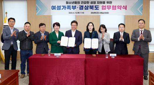경북도는 여성가족부와 15일 도청에서 기관 간 청소년정책 협력을 강화하고 청소년의 건강한 성장을 도모하기 위한 업무협약을 체결했다.