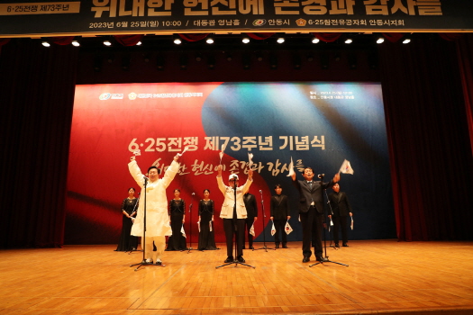 특히, 행사 말미에는 김준태 6.25참전유공자회 안동시지회장과 권기창 안동시장, 김경도 안동시의회 부의장이 무대에 올라 만세삼창을 외치자 350여 참석자들이 열의에 찬 후창으로 함께했다. 이어, 안동시립합창단이 6.25 노래를 제창하며 대단원의 막을 내렸다.