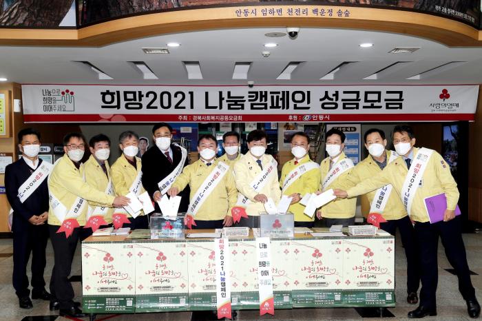 (안동시=경북온뉴스) 우미영 기자 = 안동시가 ‘나눔으로 희망을 이어주세요’라는 슬로건으로 2020년 12월 1일부터 2021년 1월 31일까지 실시한「희망2021 나눔캠페인」 성금모금 결과 8억 9백만 원을 모금하여 사랑의 온도 120℃를 달성했다.