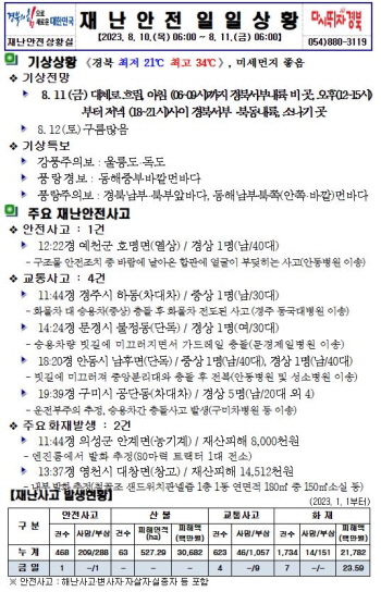 자료/ 경상북도 재난안전상황실 054-880-3119