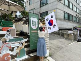 15일 광복절, 태극기가 휘날리는 서울 북촌 ‘안녕, 안동’ 팝업스토어에 국내외 관광객의 발길이 이어졌다.