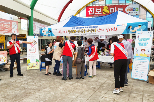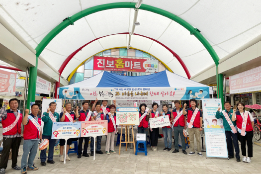 청송군 진보면 디딤돌 지역사회보장협의체(민간위원장 윤도석)는 지난 8월 23일 진보시장에서 특화사업의 일환으로 “함께사는 이웃에게 관심갖기” 캠페인을 실시했다.