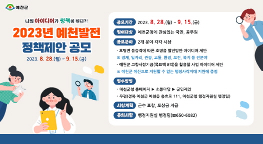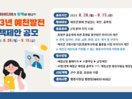 13년 연속 경상북도 제안제도 운영평가에서 수상한 예천군(군수 김학동)이 이번에는 전 국민을 대상으로 ‘2023년 예천발전 정책제안공모를 실시한다.