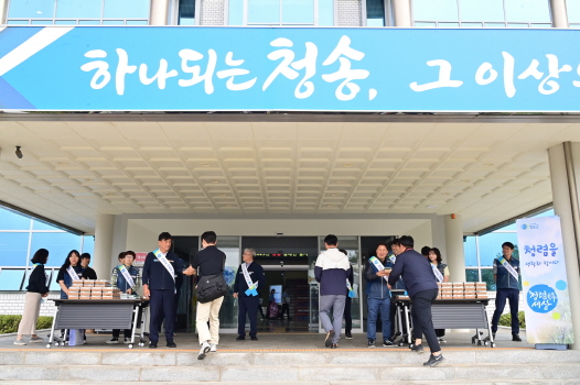 청송군은 지난 9월 22일 아침 군청 현관 입구에서 출근하는 직원들을 대상으로 '청렴 캠페인'을 펼쳤다.