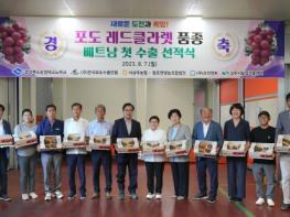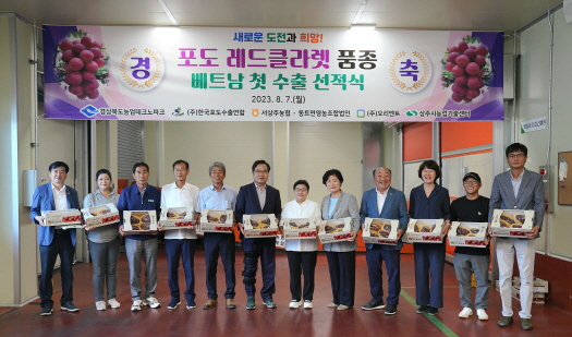 첫 수출길에 오른 경북도 육성 수출 1호 ‘레드클라렛’은 당도가 높고 머스캣 향이 나는 적색 포도로 베트남, 홍콩, 싱가포르 등 현지에서 높은 가격(100∼120천원/2kg)에 거래되어 주목받았다.