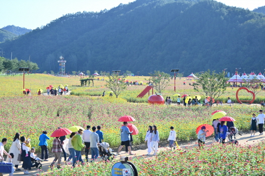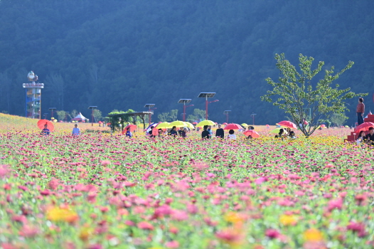 전국 최대 규모(약42,000평)의 백일홍 정원인 ‘산소카페 청송정원’에 백일홍 꽃이 만개한 가운데, 추석연휴(9월 28일 ~ 10월 3일) 6일간 3만여 명이 다녀가는 국민 힐링공원으로 명성을 이어가고 있다.