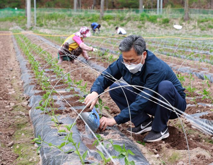 한편 토구리 이호종 이장은 “뙤약볕 아래 구슬땀을 흘려가며 고추를 심고 있는 현장을 군수님께서 격려 방문해주셔서 힘이 난다.”며 농가를 대표하여 감사의 뜻을 전하기도 했다.