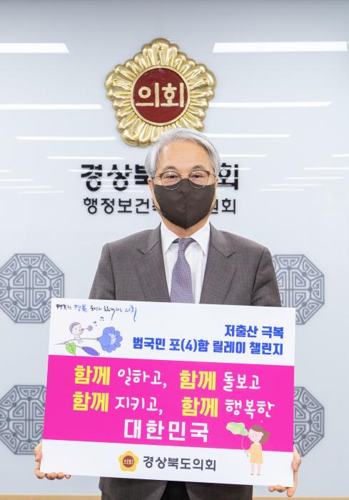 (경북도의회=경북온뉴스) 김승진 기자 = 경상북도의회 김하수 의원(행정보건복지위원장)은 4월 23일‘저출산 극복을 위한 범국민 포(4)함 릴레이 챌린지’에 동참했다.