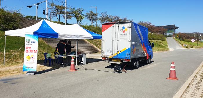 「배출가스 무료검사의 날」은 미세먼지를 저감하고 대기질 개선을 위해 검사를 원하는 관내 운행 경유차를 대상으로 매연측정기를 이용하여 배출가스 초과 여부를 무료로 점검하는 행사이다.
