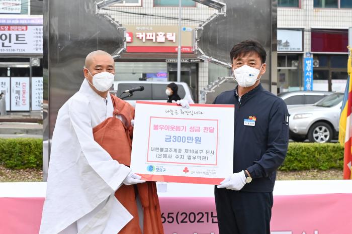 청송읍 소헌공원에서 열린 이날 점등식은 코로나19 확산 방지를 위해 청송불교사암연합회 회원 스님과 신도 일부가 참석한 가운데 차분하게 진행되었으며, 은해사(영천 소재) 주지 덕관스님은 지역 소외계층을 위한 불우이웃돕기 성금 300만원을 청송군에 전달했다.
