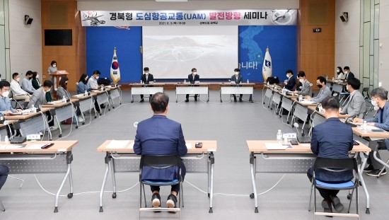 도는 3일 도청 화백당에서 국토교통부, 한국공항공사, 한화시스템(주), 관련 기업 등이 참석한 가운데‘경북형 도심항공교통(UAM) 발전방향 세미나’를 개최했다.